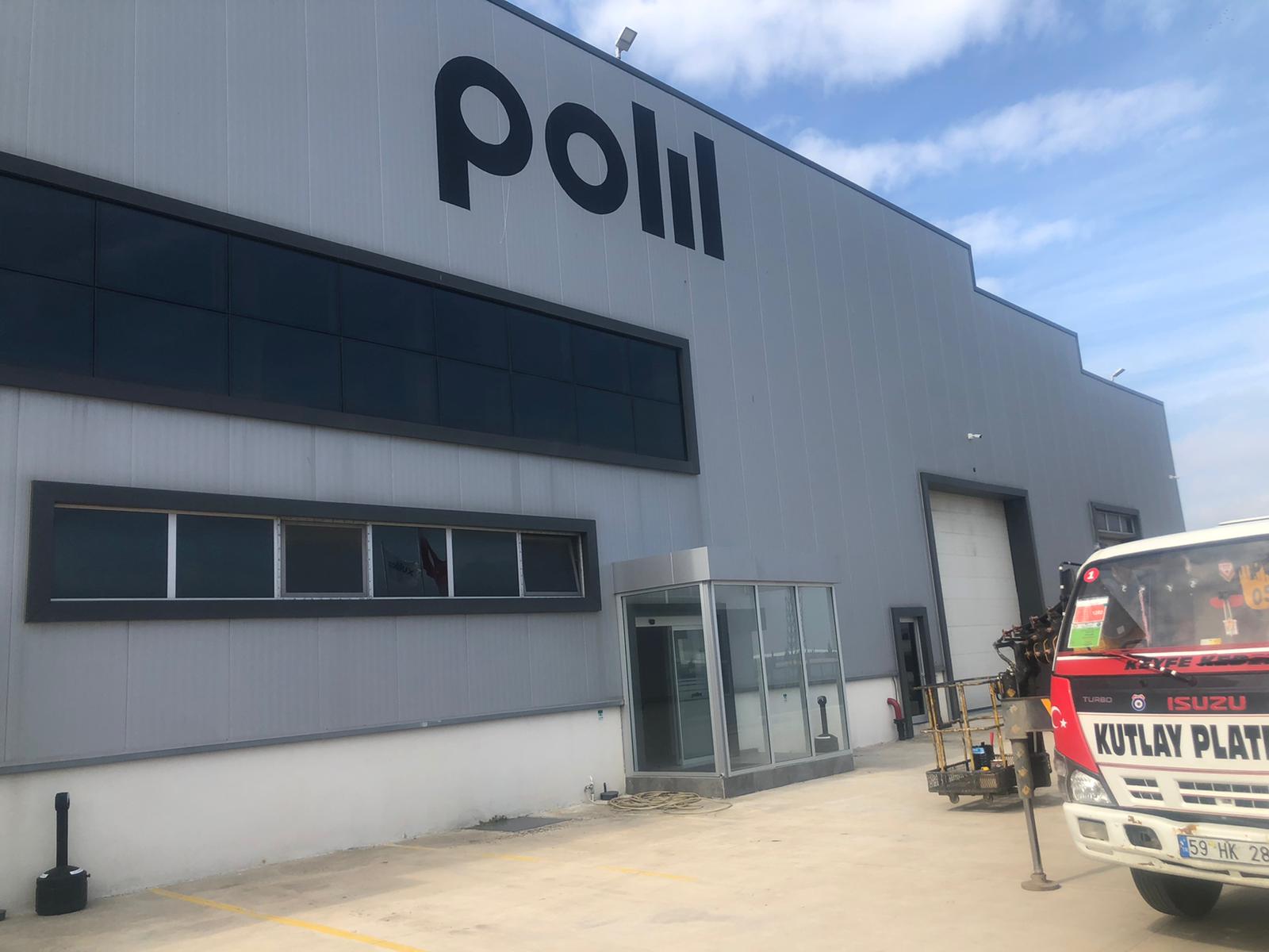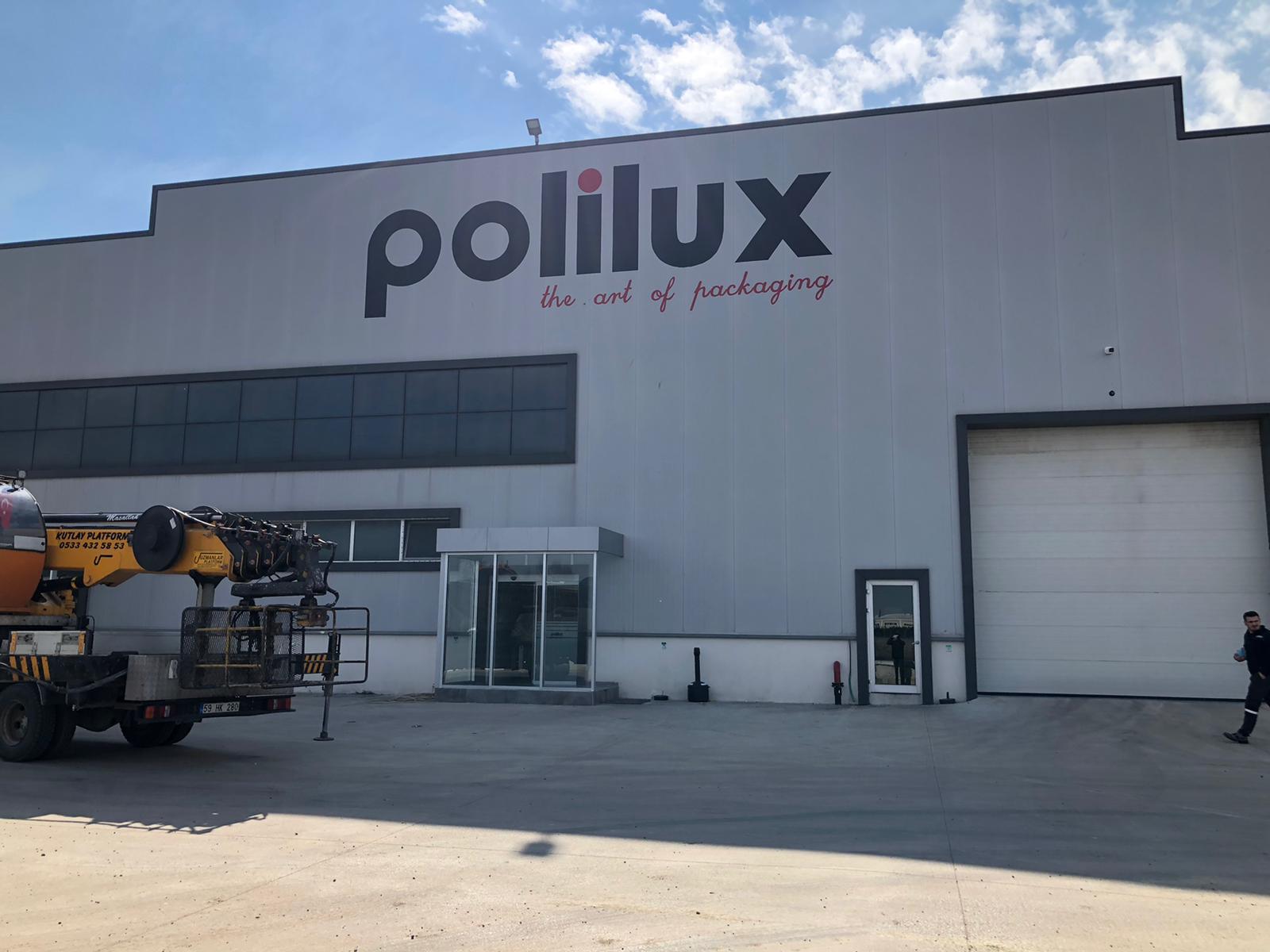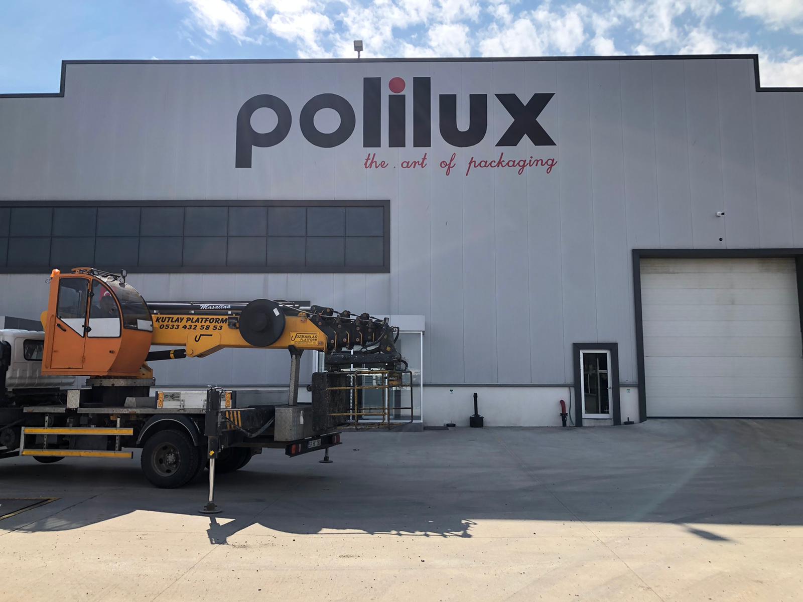 Polilux Fabrika Cephe Vinç Yardımı ile Logo Çizimi ve Boya ile Yazımı