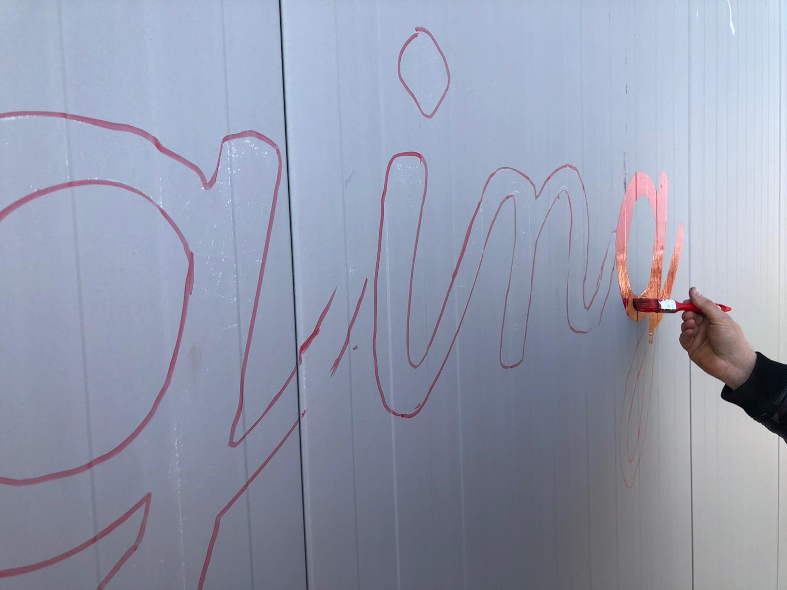 Bina cephe fabrika antrepo depo çatı duvar tavan logo firma adı çizim boya ile yazımı sanatın duvara yansıması çok nadir az denilecek bir şekilde günümüzde yazıları duvara yazmak.